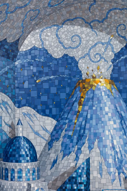 Pixel is a series of paintings which explores the similarities between the early traditions of mosaics and the visual building blocks of the digital world - pixels. The series uses references to literature, art history and video games to build a narrative language which attempts to be both ancient and new.